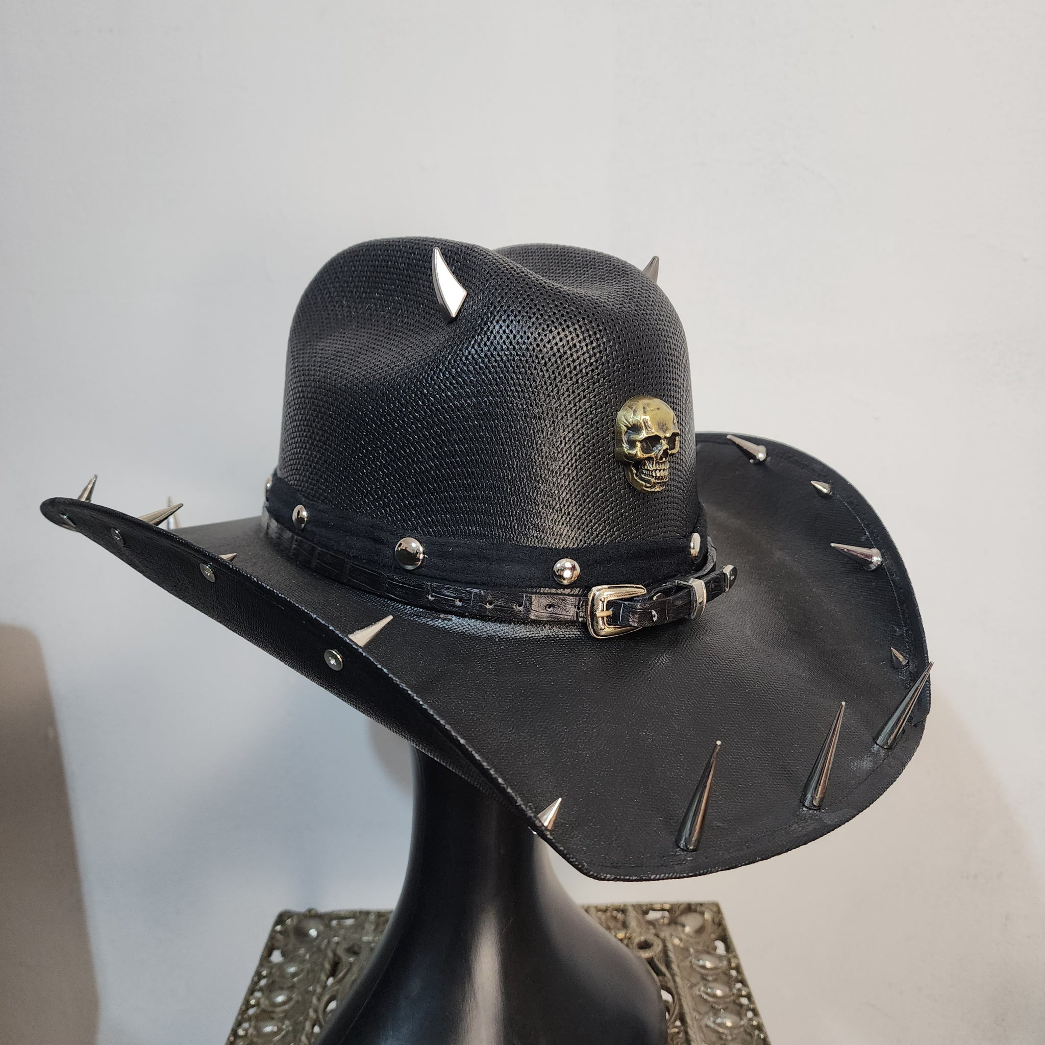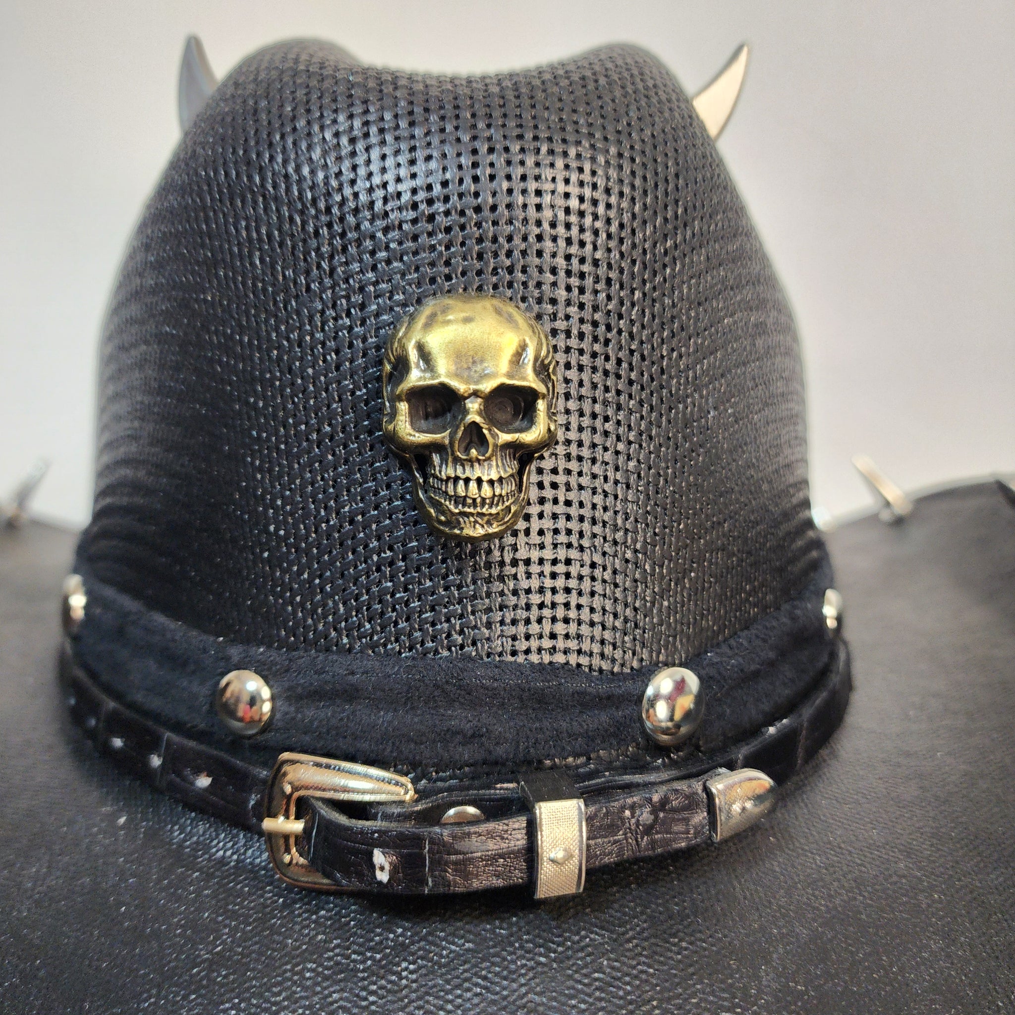 Goth Cowboy Hat Y'allternative Western Gothic Fashion Large Black with Silver and Bronze Skull & Horns
